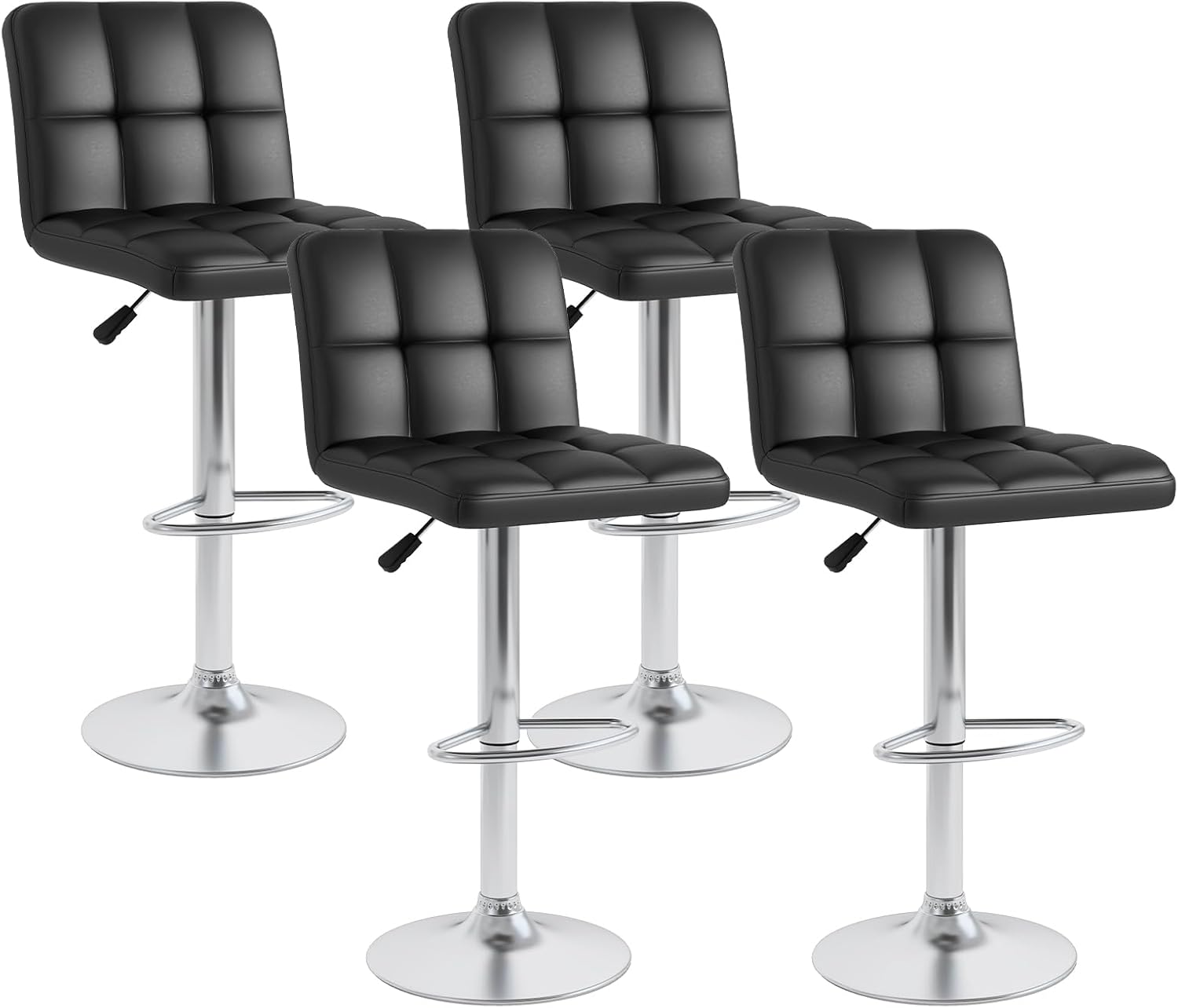Transform your kitchen or bar area into the chic and comfortable space you’ve always dreamed of with these modern bar stools! Boasting a 360° swivel and height adjustability from 25'' to 33.5'', these counter stools cater to all your seating needs, making every gathering more enjoyable. Wrapped in luxurious PU leather that’s not just eye-catching but also super easy to clean, they promise style and convenience in one go. Don’t worry about sitting for long hours, as each stool is designed with a supportive backrest and footrest for utmost comfort. Sturdy and safe, the electroplated metal base prevents any wobble and keeps your floors pristine. Plus, they’re a cinch to assemble - you’ll have them set up before your next party starts! Be the envy of your guests with these dazzling set in your home!